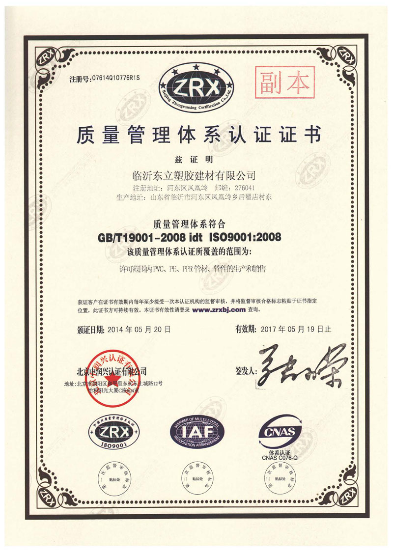 質量管理體系認證證書
