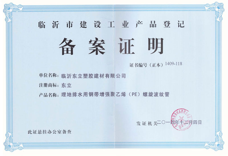 建設工業(yè)產(chǎn)品備案登記證