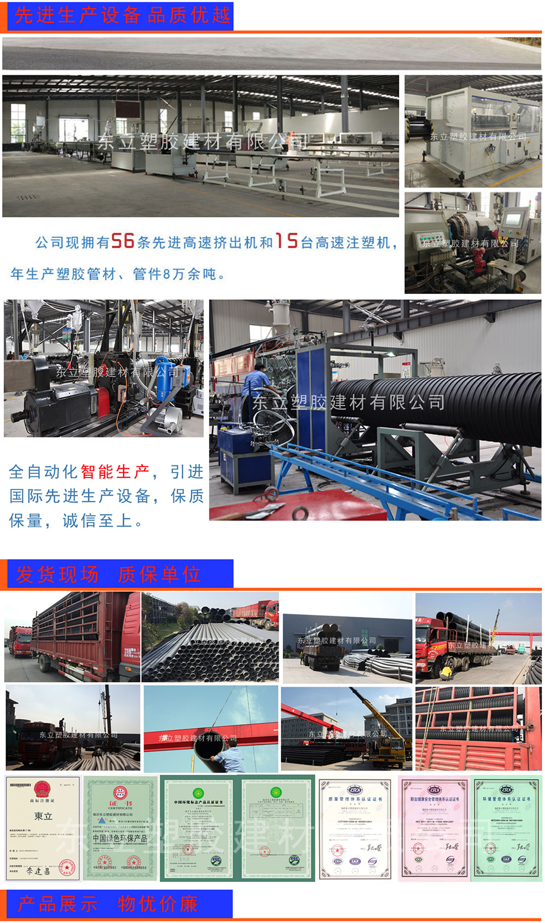??主要生產(chǎn)“東立”品牌塑膠管道,主要產(chǎn)品包括五大系列十六種產(chǎn)品,規(guī)格齊全,產(chǎn)能龐大、供貨及時,設備先進、質(zhì)量穩(wěn)定,服務優(yōu)良、滿足客戶的需求。